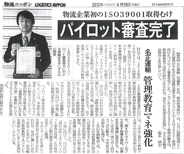物流ニッポンに当社記事(4/19)が掲載されました。