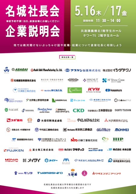 加藤社長が名城大学出身ということもあり名城大学社長会主催の「名城大学社長会企業説明会」に参加いたします!