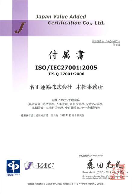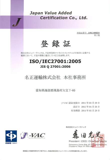 2012年3月に実施されましたISO27001(情報セキュリティマネジメントシステム)の定期審査が完了し登録証を更新いたしました。