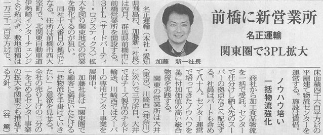 3月12日付 輸送経済に前橋営業所開設に関する当社記事が掲載されました。
