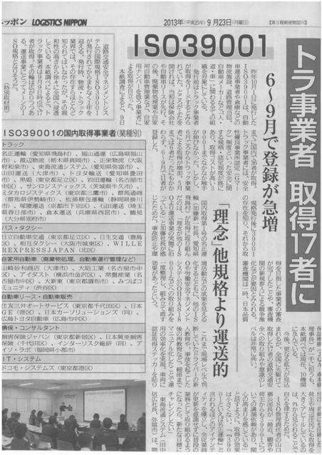 ISO39001取得事業者の紹介で当社がとりあげられました。