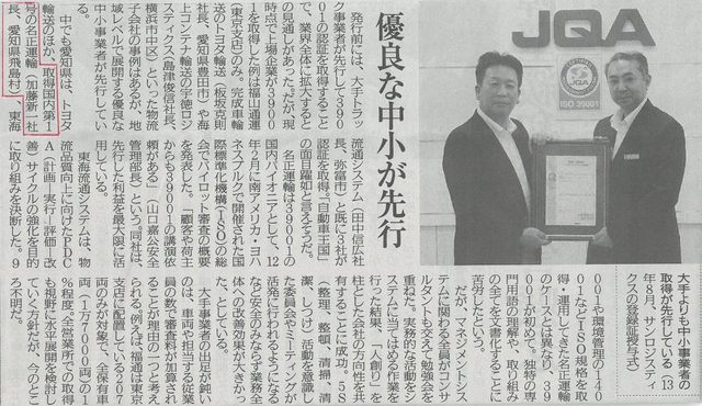ISO39001取得事業者の紹介で当社がとりあげられました。