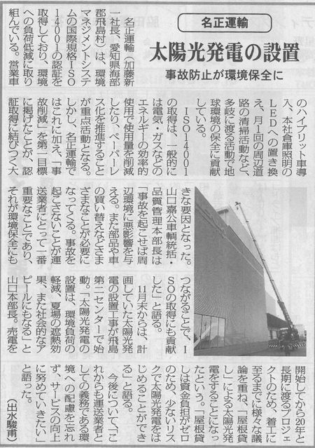 12月8日付 物流weekly当社記事(太陽光設置)掲載