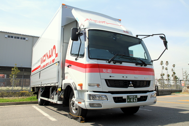 この度、三菱ふそう熱田支店様、パブコ様のご協力のもと4トンウイング車についても、大型車輌と同じホワイトパネルの車輌が完成し納車されました。今後納車される車輌より順次この新しいデザインの車輌と代替が進む予定です。