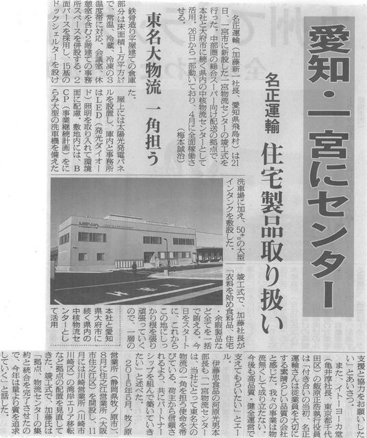 1月28日付 物流ニッポン当社記事掲載~一宮にセンター新設